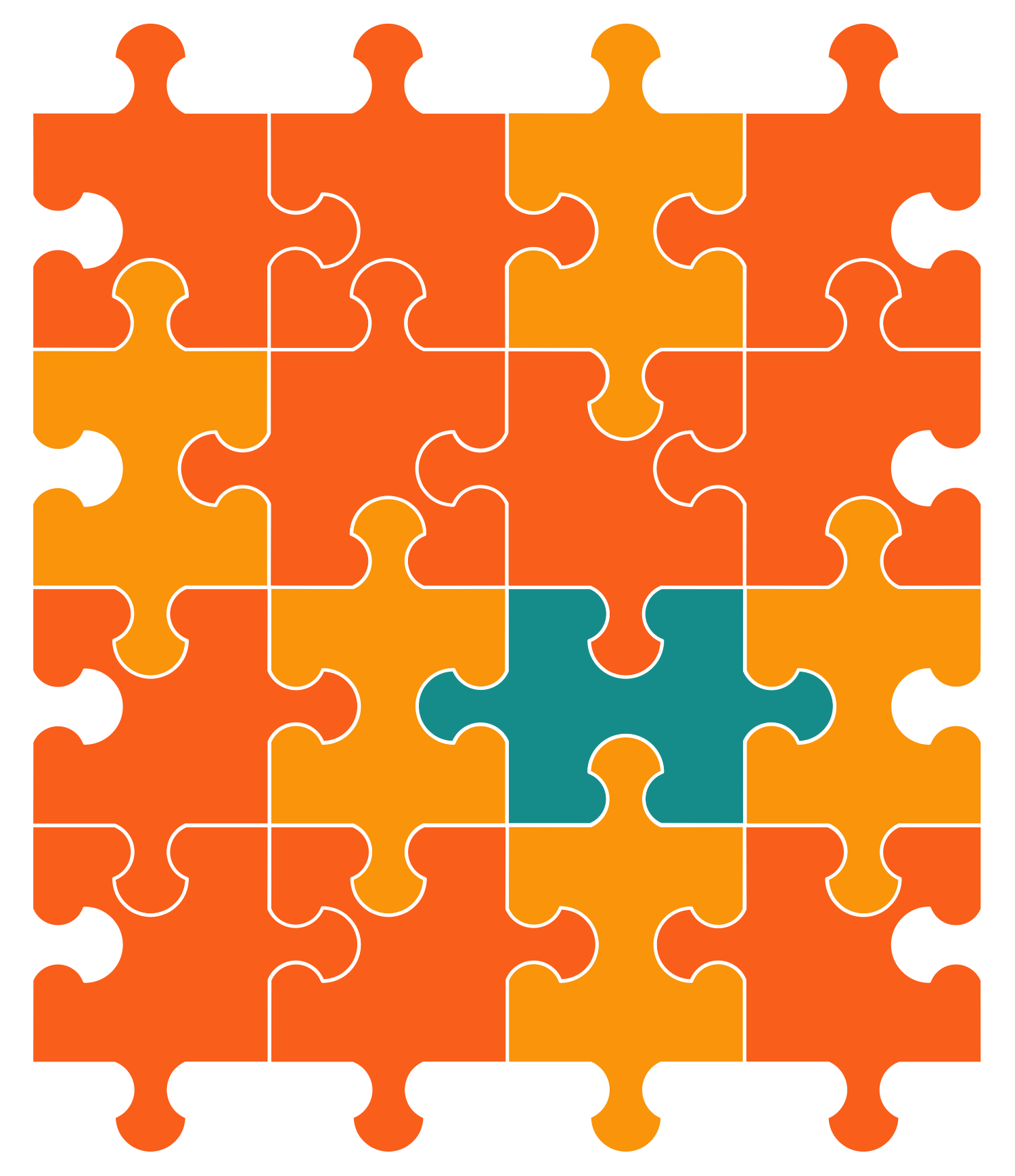 A variety of kinds of Marketing charts amazes by its abundance. This sample shows one of the most extraordinary diagram types - a Puzzle Piece Diagram for an Alternating Sign Matrix. The alternating sign matrices generalize the permutation matrices. The first defined by David Robbins, William Mills and Howard Rumsey, the Alternating Sign Matrices are the square matrices of 0s, 1s, and c1s, at this the sum of each row and column equals 1 and the values differing from 0 in each row and column alternate in sign. This sample is composed from the puzzle pieces, which are fully editable, you can change some of them on another ones, rearrange, resize, or recolor them to construct your own models and informative diagrams in a form of Puzzle charts. At the same time, this sample can be used as is and without changes paste at your documents, presentation slides, reports, etc.