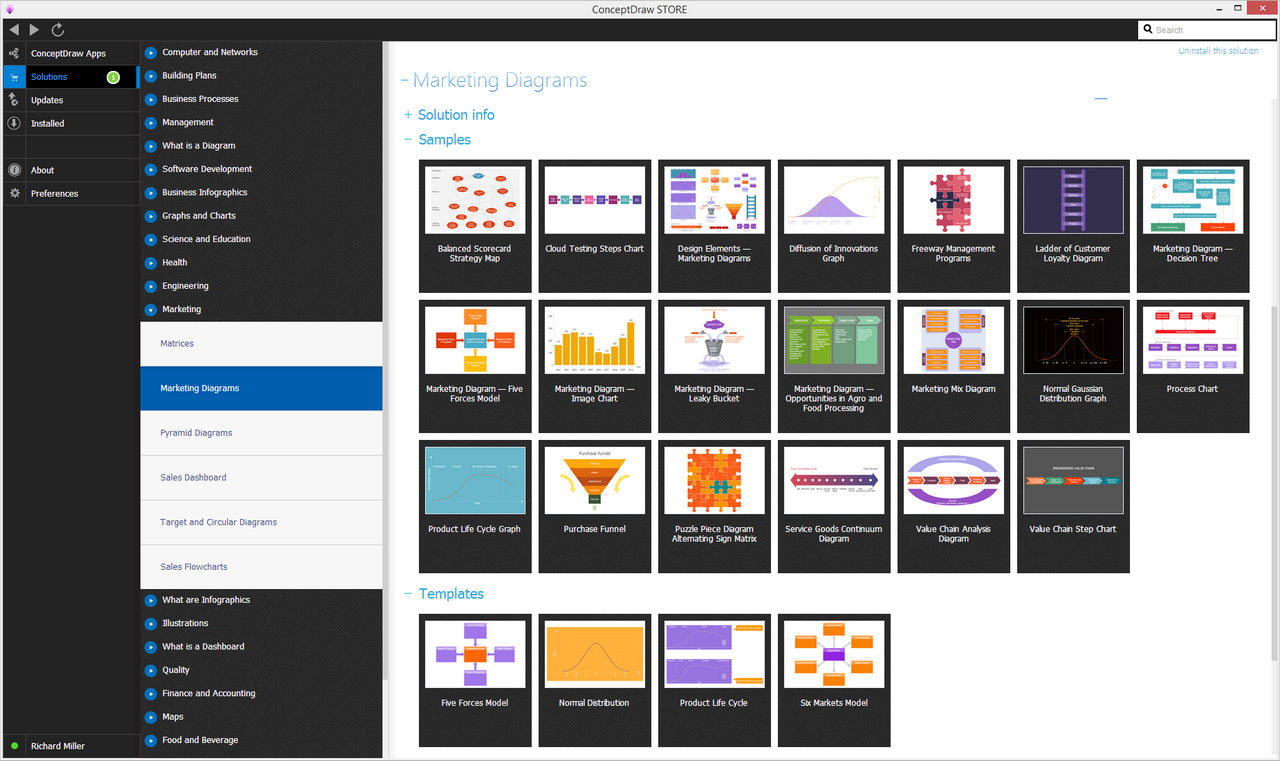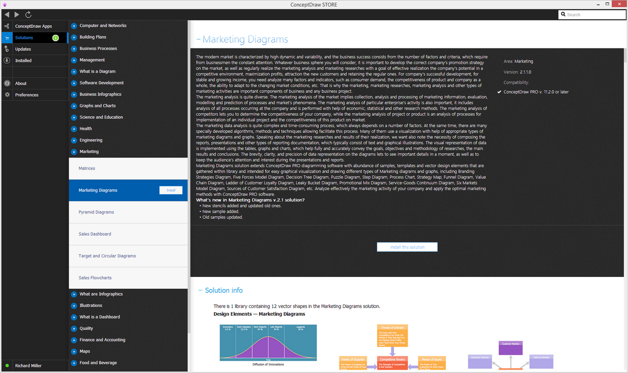 After ConceptDraw STORE and ConceptDraw DIAGRAM are downloaded and installed, you can install the Marketing Diagrams solution from the ConceptDraw STORE.