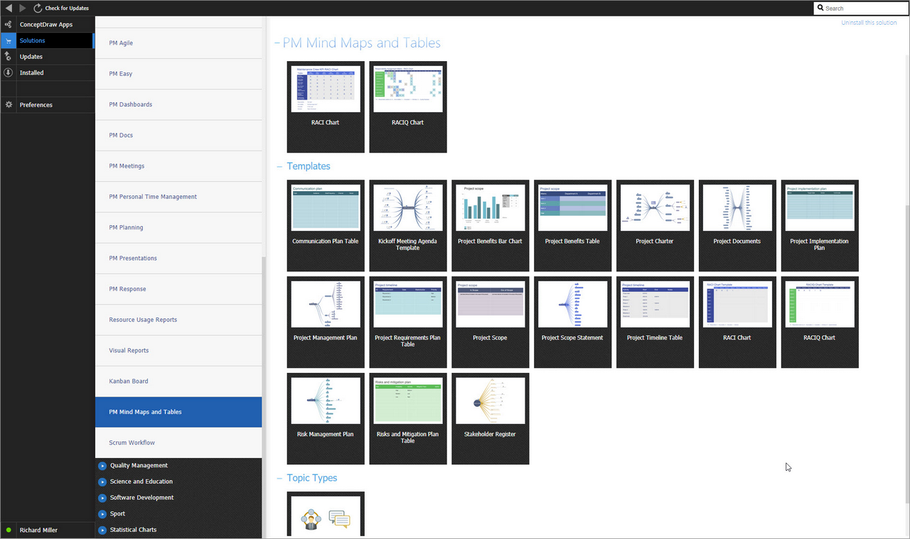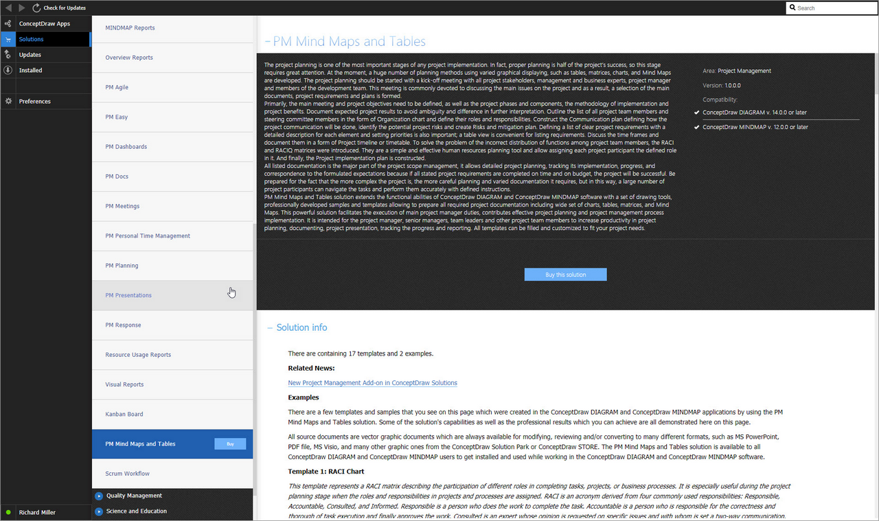 After ConceptDraw MINDMAP is installed, the PM Mind Maps and Tables solution can be purchased either from the Project Management area of ConceptDraw STORE itself or from our online store. Thus, you will be able to use the PM Mind Maps and Tables solution straight after.