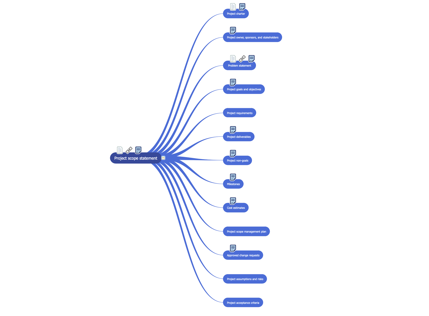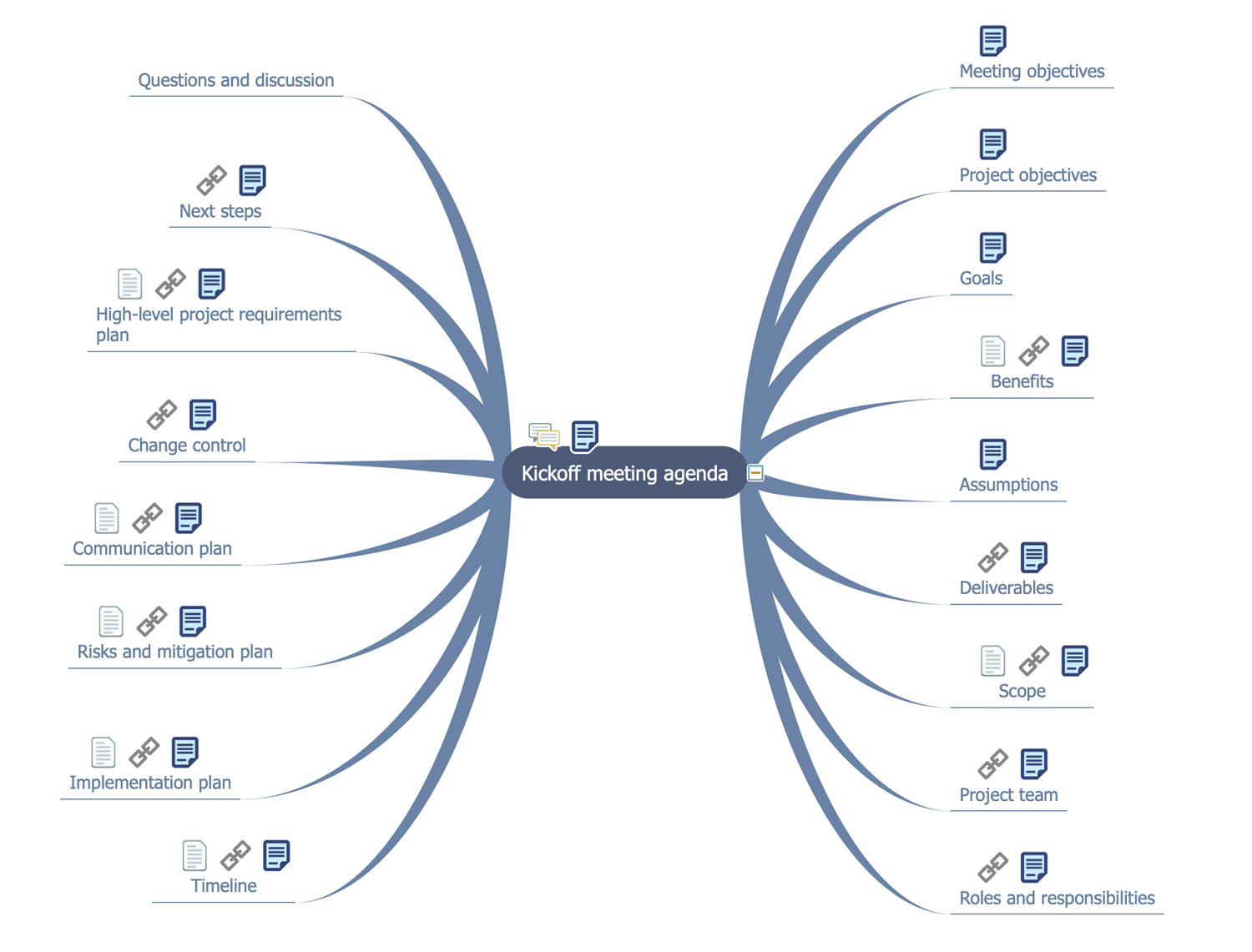 All source documents are vector graphic documents which are always available for modifying, reviewing and/or converting to many different formats, such as MS PowerPoint, PDF file, MS Visio, and many other graphic ones from the ConceptDraw Solution Park or ConceptDraw STORE. The PM Mind Maps and Tables solution is available to all ConceptDraw DIAGRAM and ConceptDraw MINDMAP users to get installed and used while working in the ConceptDraw DIAGRAM and ConceptDraw MINDMAP software.