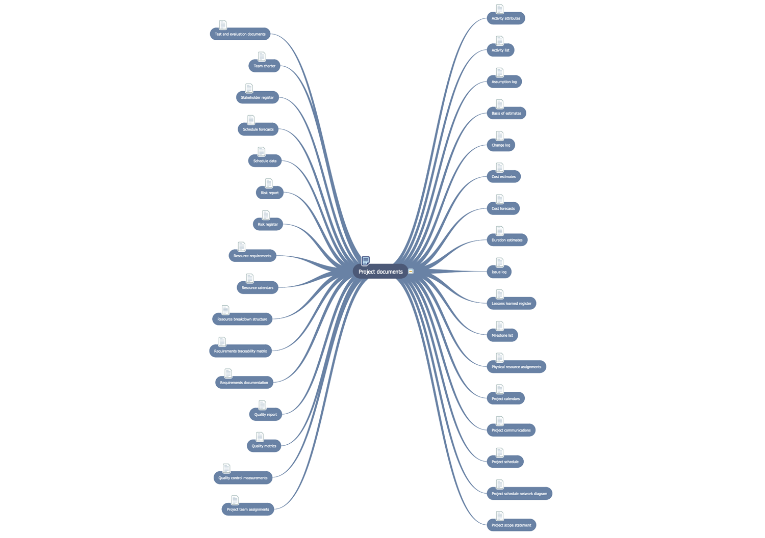 PM Mind Maps and Tables solution extends the functional abilities of ConceptDraw DIAGRAM and ConceptDraw MINDMAP software with a set of drawing tools, professionally developed samples and templates allowing to prepare all required project documentation including wide set of charts, tables, matrices, and Mind Maps. This powerful solution facilitates the execution of main project manager duties, contributes effective project planning and project management process implementation. It is intended for the project manager, senior managers, team leaders and other project team members to increase productivity in project planning, documenting, project presentation, tracking the progress and reporting. All templates can be filled and customized to fit your project needs.