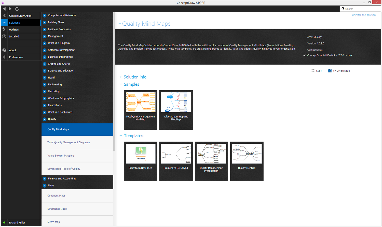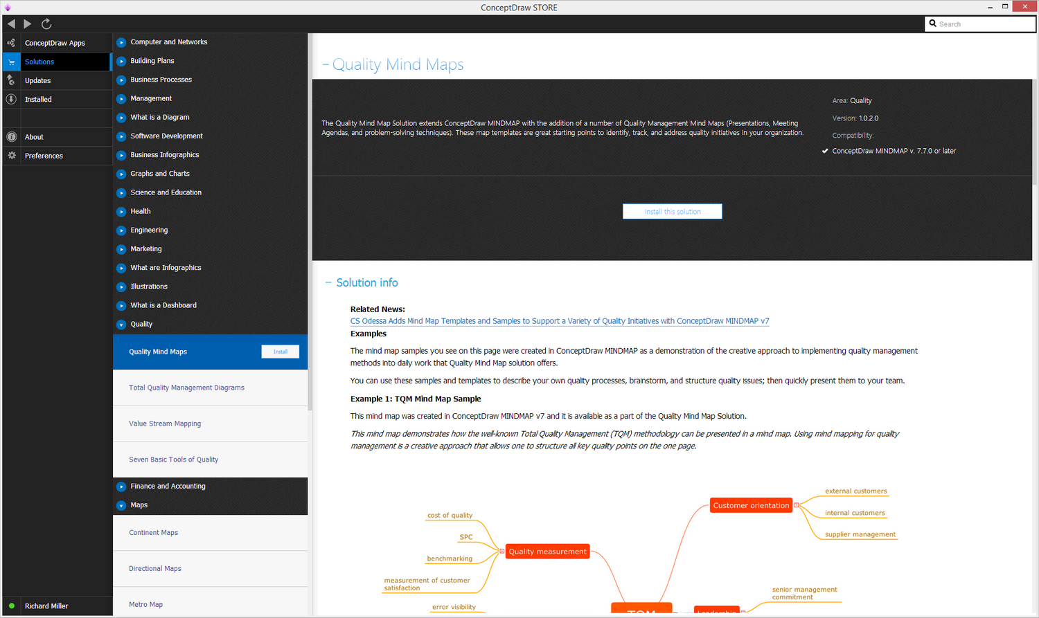 After ConceptDraw STORE and ConceptDraw MINDMAP are downloaded and installed, you can install the Quality Mind Map solution from the ConceptDraw STORE.
