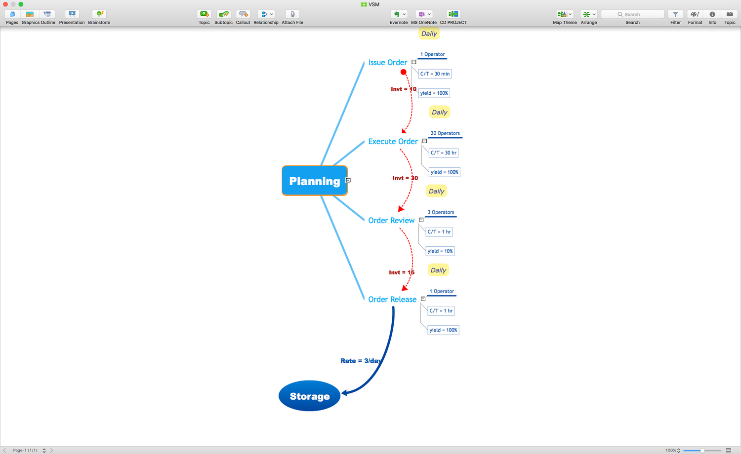 This Mind Map depicts how the Value Stream Maps can be represented as Mind Maps. The Value Stream Mapping (VSM) is a lean-management tool used to analyze the current state of the product or service at the implementing the lean manufacturing principles, as well as to visualize the process of turning the raw materials into the ready products sold to consumers. It allows reducing the lean waste as compared to the current state. The Value Stream Maps can help a manufacturing team to visualize the material and information flow required to deliver a product or a service to customers. They are used in the Lean Manufacturing methodology to analyze and identify potential process improvement opportunities. The main purpose of the value-stream mapping is to identify waste and quality problems, to reduce and in ideal to remove waste in value streams. All this contributes to increasing the productivity and efficiency of manufacturing processes.