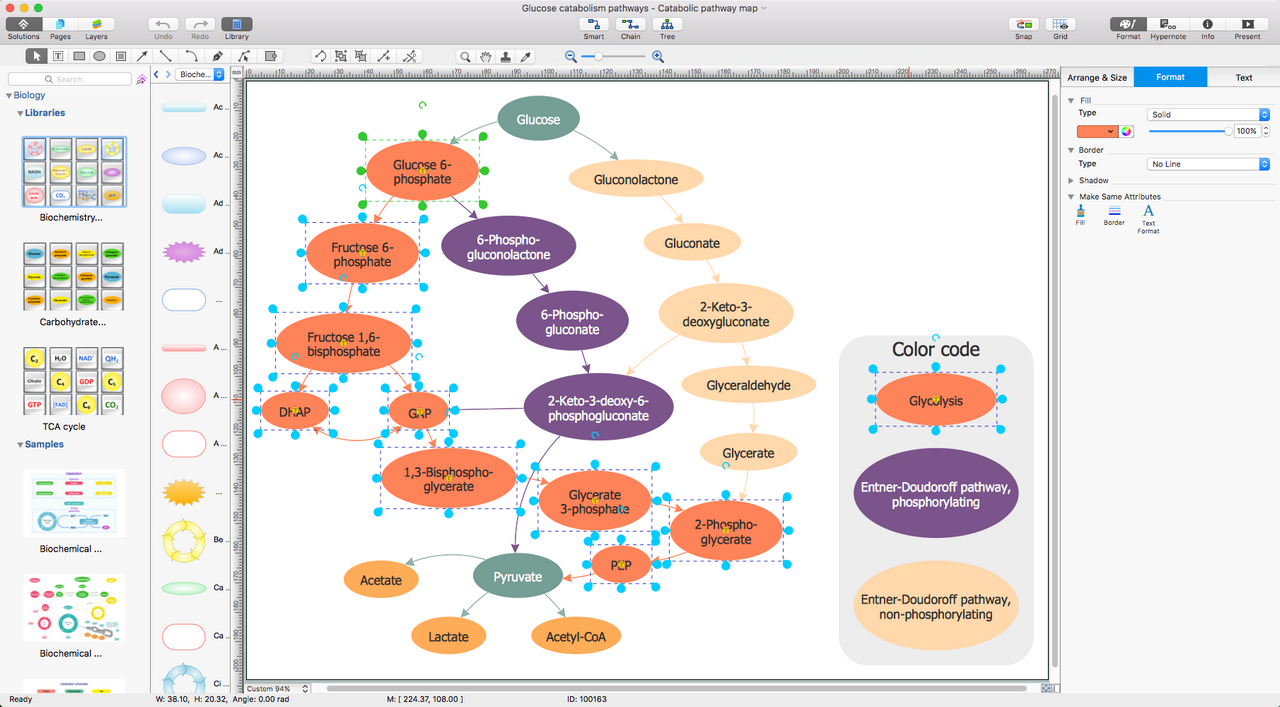 This sample shows the biological image of glucose catabolism pathways. Utilising a legend is a useful and convenient way to explain various designations for your diagram and to share any additional information.