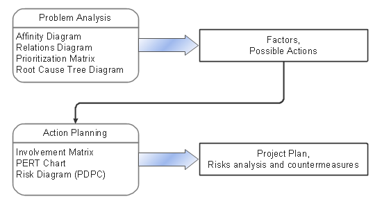 With 7 Tools, the different diagrams are described and arranged in a logical way so that it is easy to see which diagram is appropriate for any given stage of the