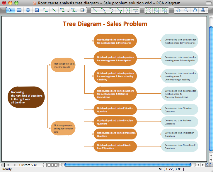 | Sale problem solution | Root cause analysis tree diagram sample | PRO |