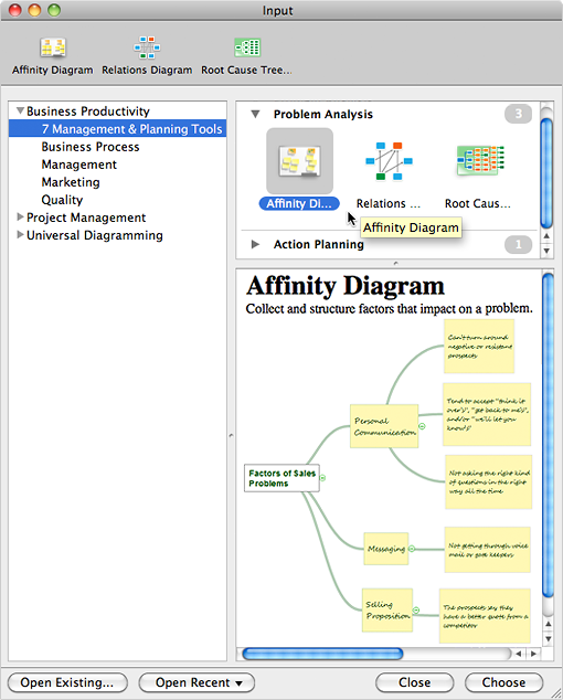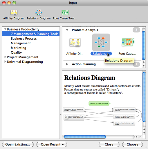 To get started you need ConceptDraw Office 2 and the “7 Management and Planning Tools” solution. You can find the solution in the Business Productivity area of ConceptDraw Solution Park. Install the solution on your computer, using ConceptDraw STORE.