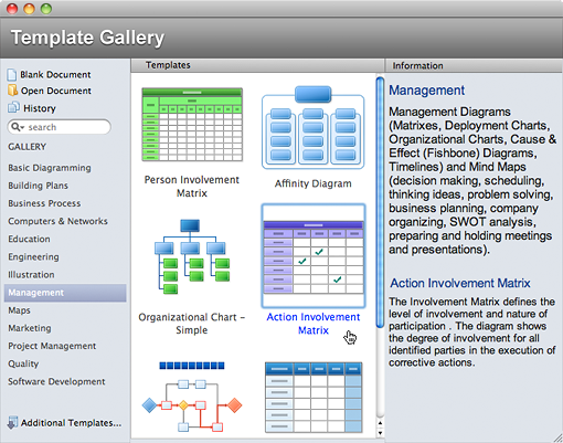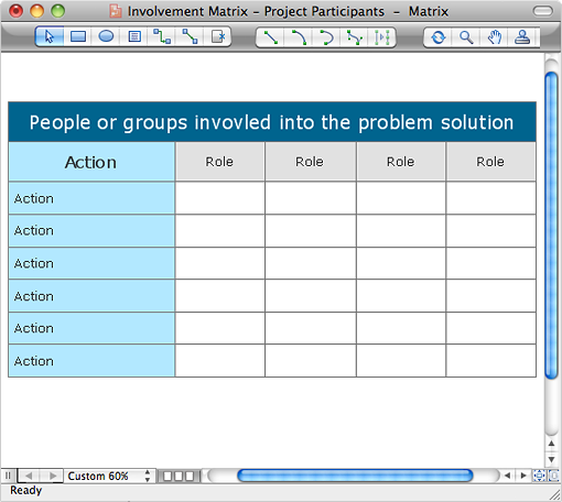 | Start new document using appropriate template | In ConceptDraw PRO open “Action involvement matrix” template | PRO |