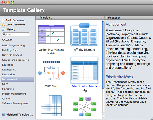 | Start new document using appropriate template | In ConceptDraw PRO open Prioritization matrix template | PRO |