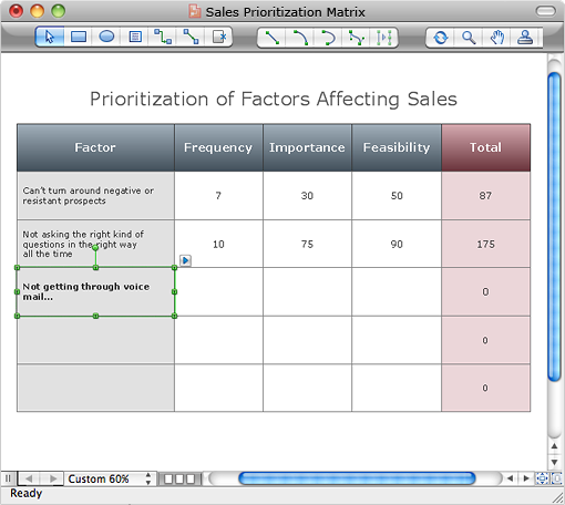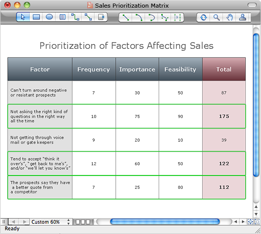 | Prioritization matrix template | ConceptDraw DIAGRAM template for creating Prioritization matrices | PRO |