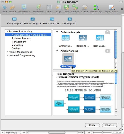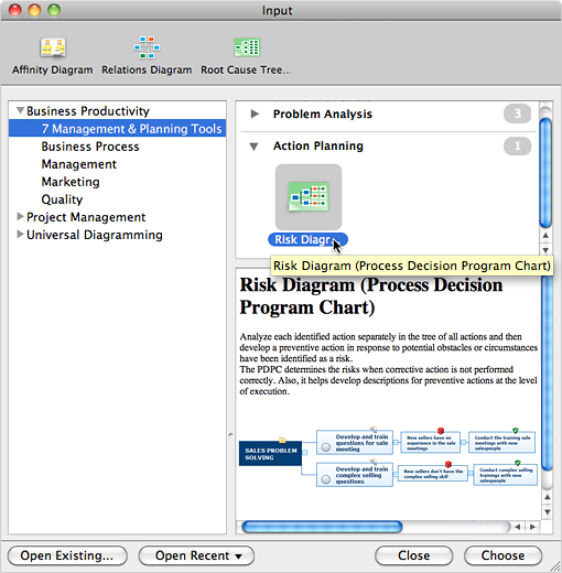 | Risk diagram (PDPC) template | ConceptDraw PRO template for creating PDPC diagrams | PRO |