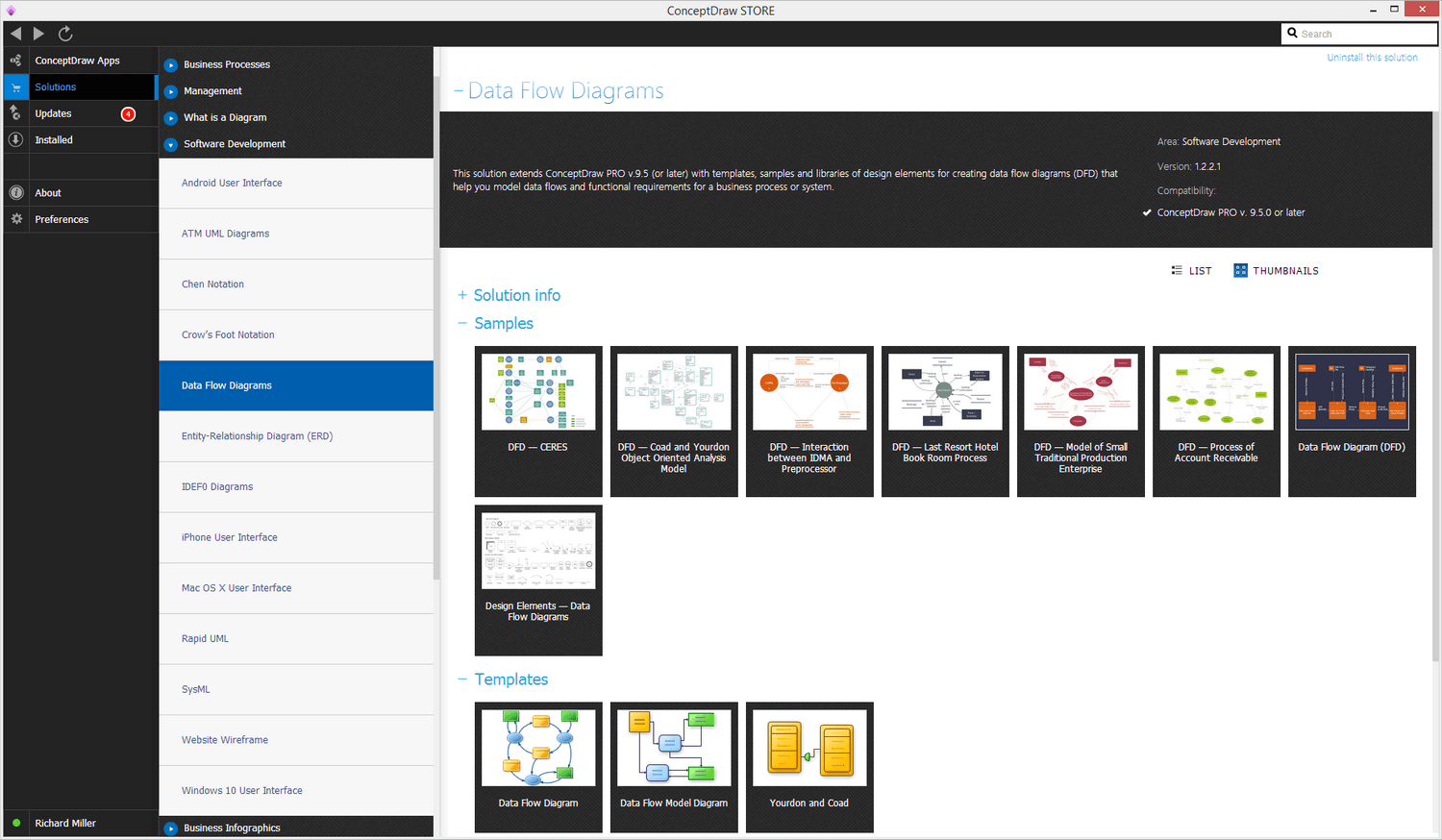After ConceptDraw STORE and ConceptDraw DIAGRAM are downloaded and installed, you can install the Data Flow Diagrams (DFD) solution from the ConceptDraw STORE.