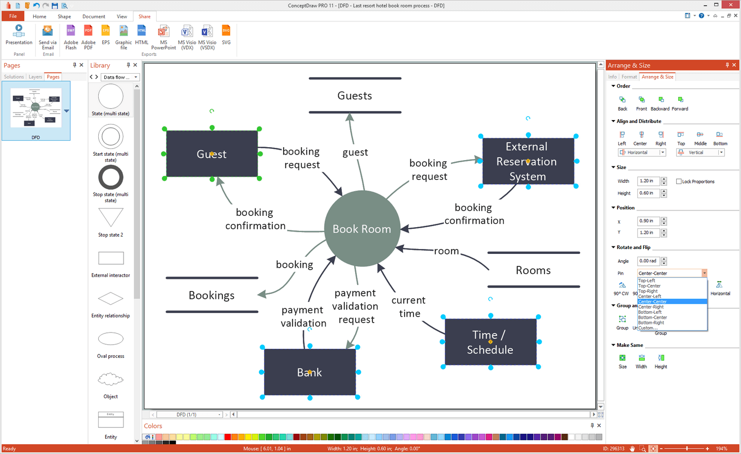 To produce professional and standardized data flow diagrams, most analysts will turn to a specialist drawing software, that can automate certain processes and cater for presentation and file sharing needs. ConceptDraw DIAGRAM, extended with the Data Flow Diagram solution, is ideal for this scenario. Within the solution is a comprehensive vector stencil library, offering the full range of icons from both notation sets mentioned above. Features inherent to ConceptDraw DIAGRAM make the diagramming process simple and efficient — one click commands allow users to select and place icons, intuitively place connector arrows, and share their document in a range of presentation modes or file types.