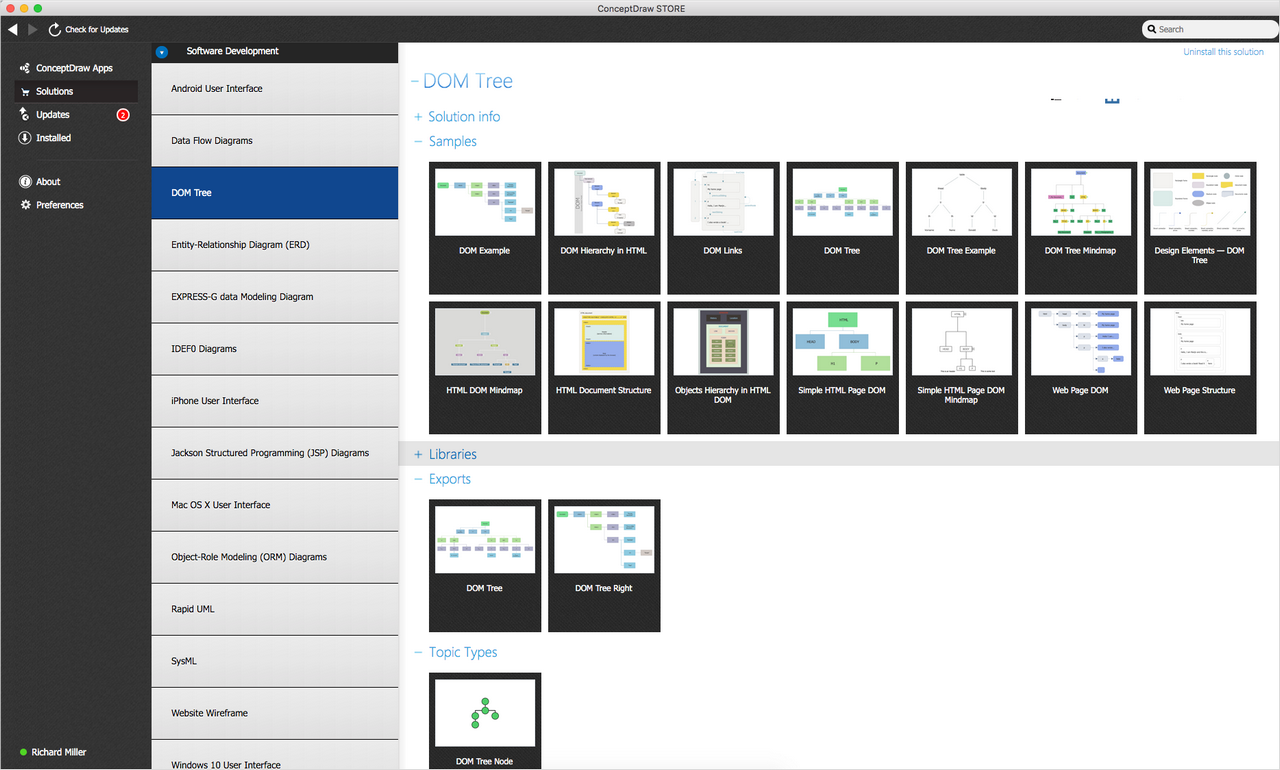 Both ConceptDraw DIAGRAM diagramming and drawing software and the DOM Tree solution can help creating the software engineering diagrams you need. The DOM Tree solution can be found in the Software Development area of ConceptDraw STORE application that can be downloaded from this site. Make sure that both ConceptDraw DIAGRAM and ConceptDraw STORE applications are installed on your computer before you get started.