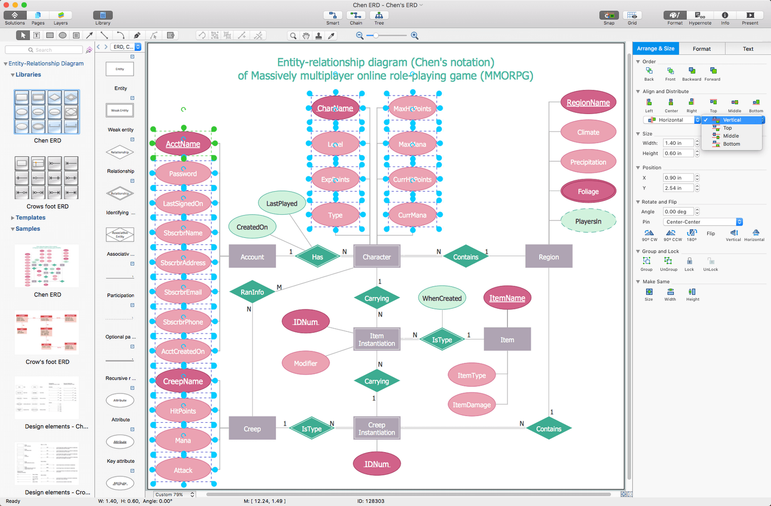 Entity-Relationship Diagram (ERD) solution extends ConceptDraw DIAGRAM charting and vector drawing software with the ability to describe a database using the Entity-Relationship model. The vector graphic diagrams produced when using this solution can be employed in your white papers, presentations, data sheets, posters, or any technical material.