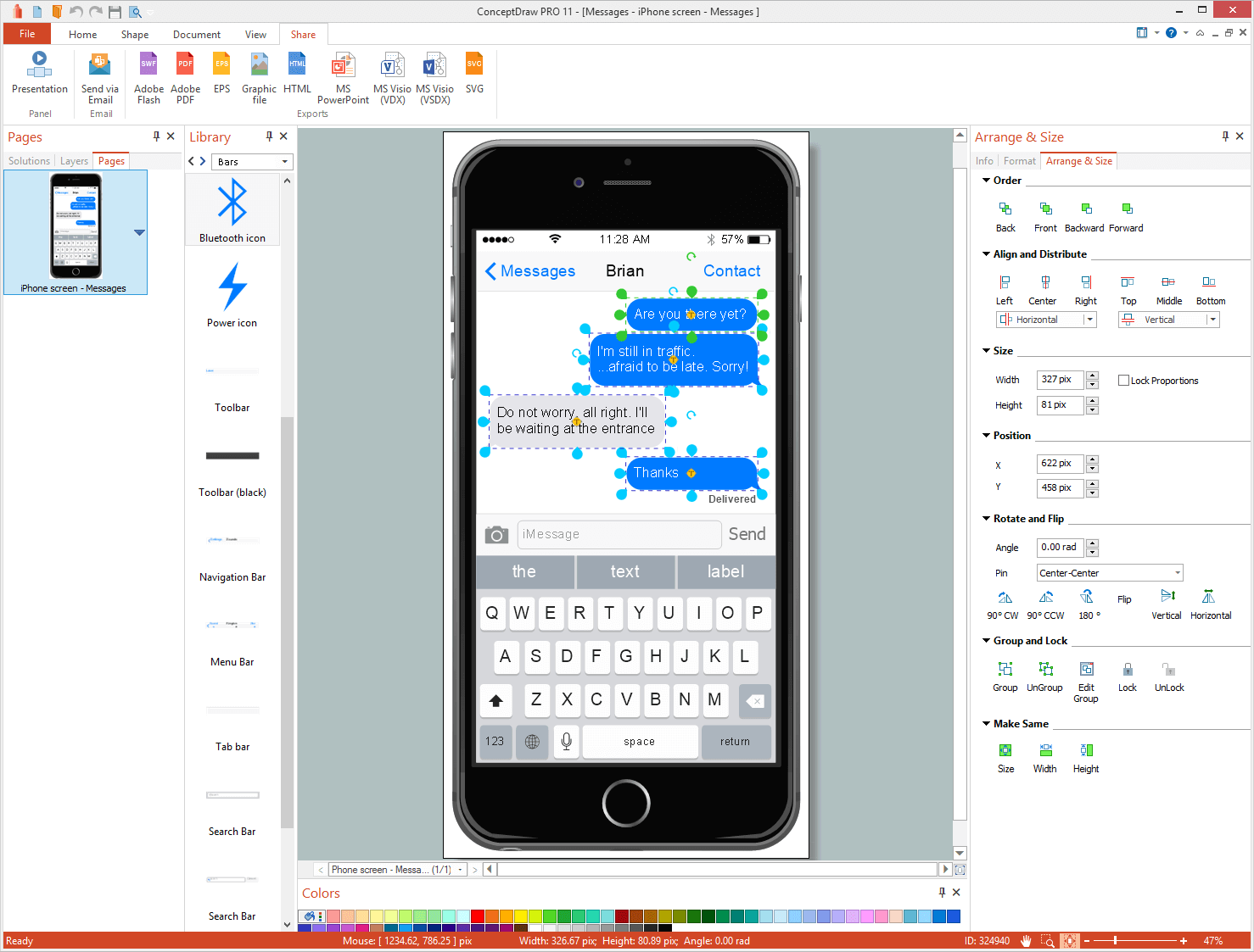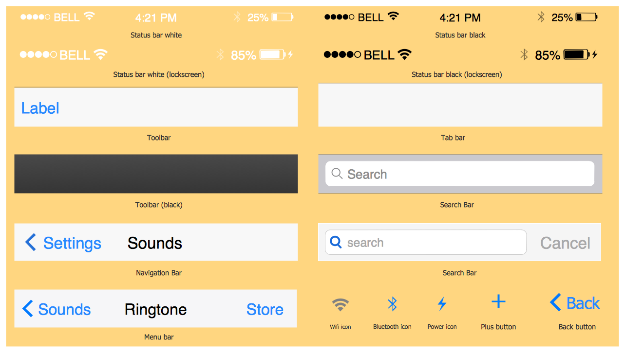 All source documents are vector graphic documents which are always available for modifying, reviewing and/or converting to many different formats, such as MS PowerPoint, PDF file, MS Visio, and many other graphic ones from the ConceptDraw Solution Park or ConceptDraw STORE. The iPhone User Interface solution is available to all ConceptDraw DIAGRAM users to get installed and used while working in the ConceptDraw DIAGRAM diagramming and drawing software.
