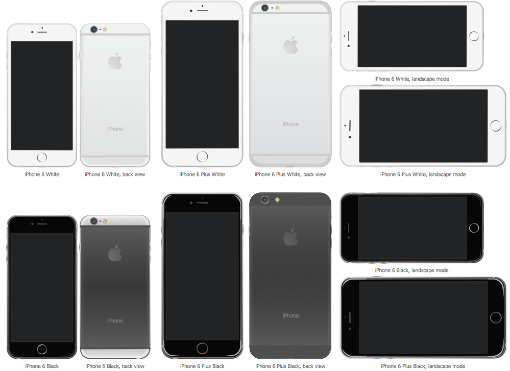 In order to draw the iPhone-related illustrations mentioning this phone’s capabilities, the ConceptDraw DIAGRAM diagramming and drawings software can be used. Having all the basic tools from the mentioned application as well as those from the iPhone User Interface solution it becomes possible to create the needed drawing within only a few minutes as the solution contains a wide range of the pre-made samples and templates of the iPhone-related drawings as well as the vector stencils libraries that support iPhone 6 UI diagrams.