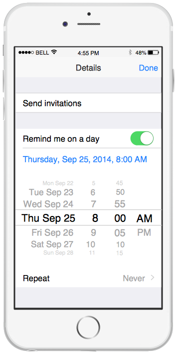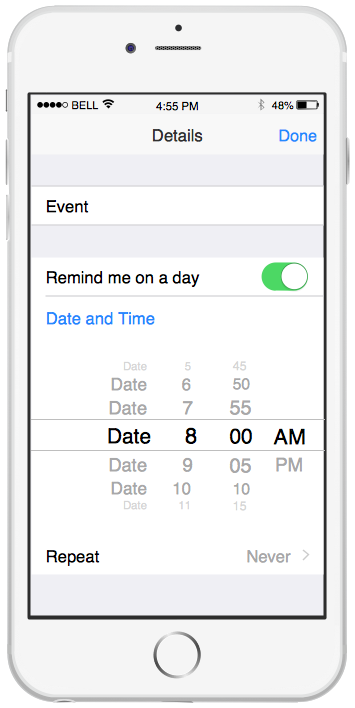 ConceptDraw DIAGRAM was used to create this sample template of an iPhone reminders page