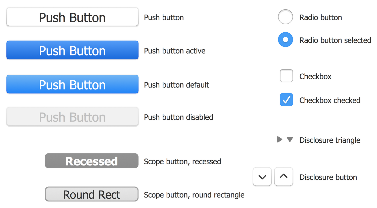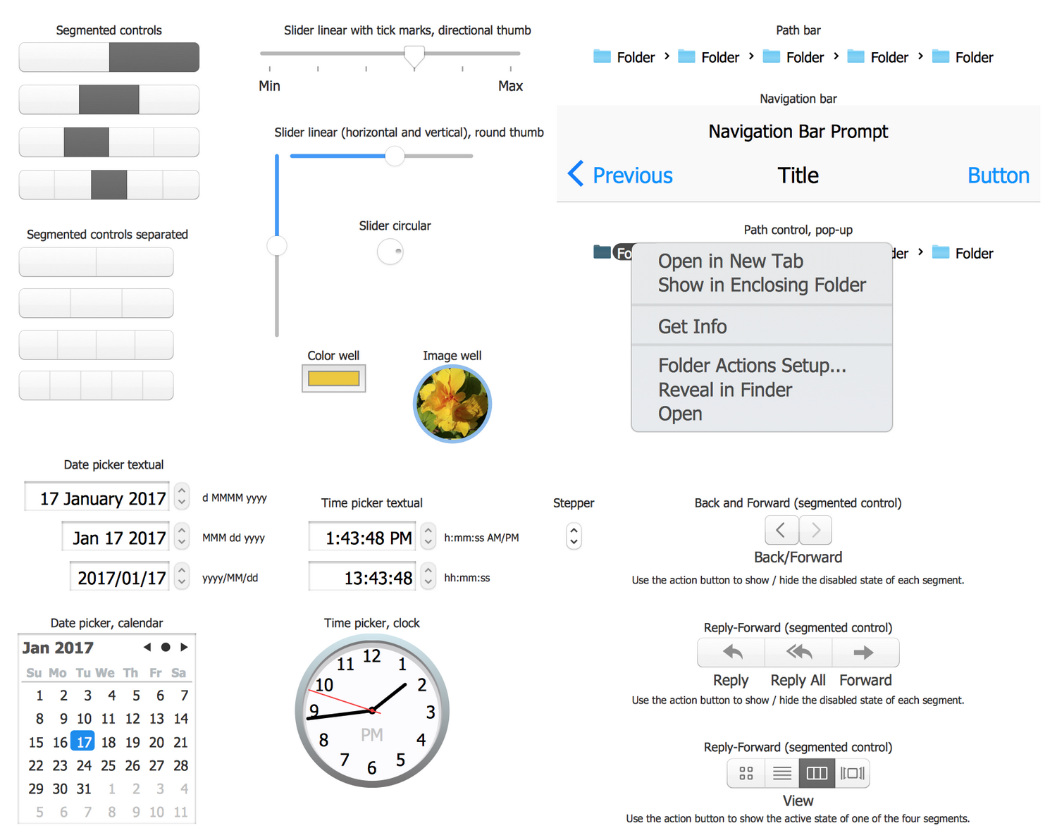 This diagram was created in ConceptDraw DIAGRAM using the set of libraries from the macOS User Interface solution. An experienced user spent 5 minutes creating this sample.