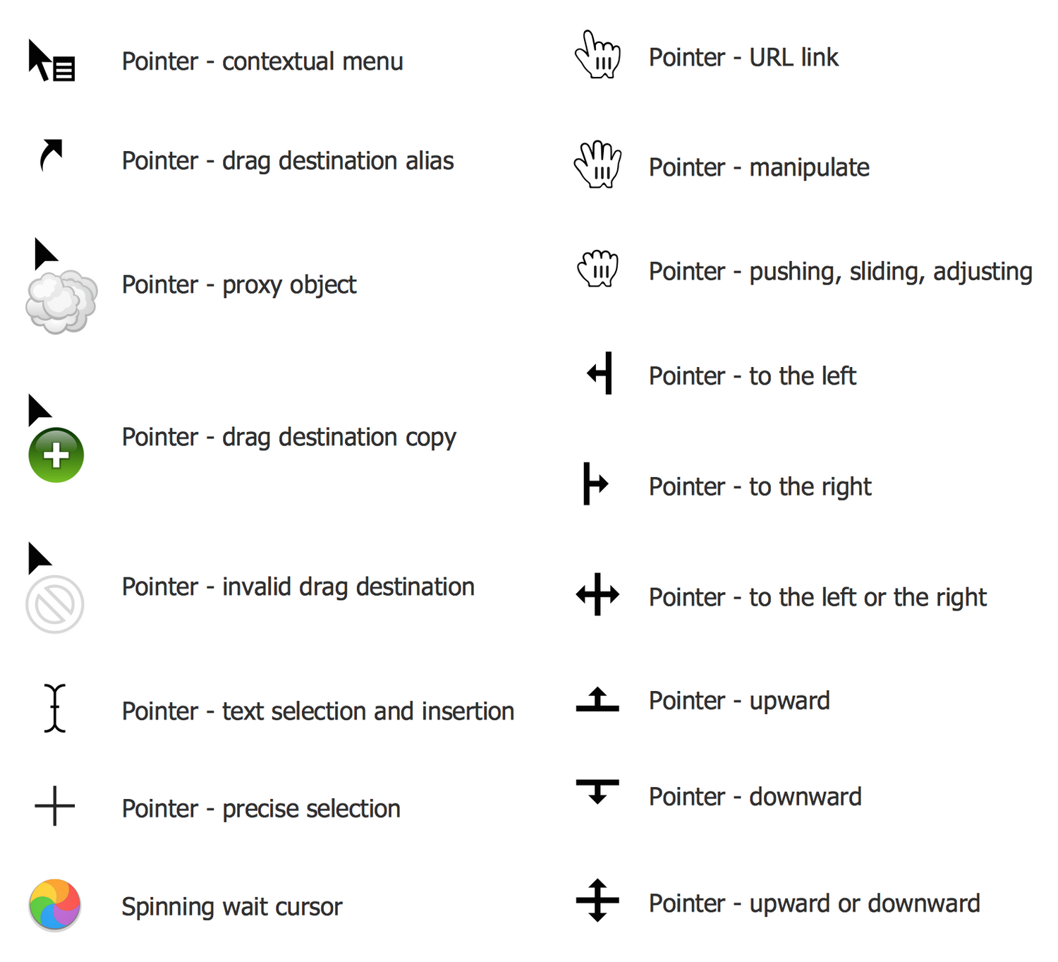 Common glyph elements; one of the icon libraries from the Mac OS X User Interface solution for ConceptDraw DIAGRAM