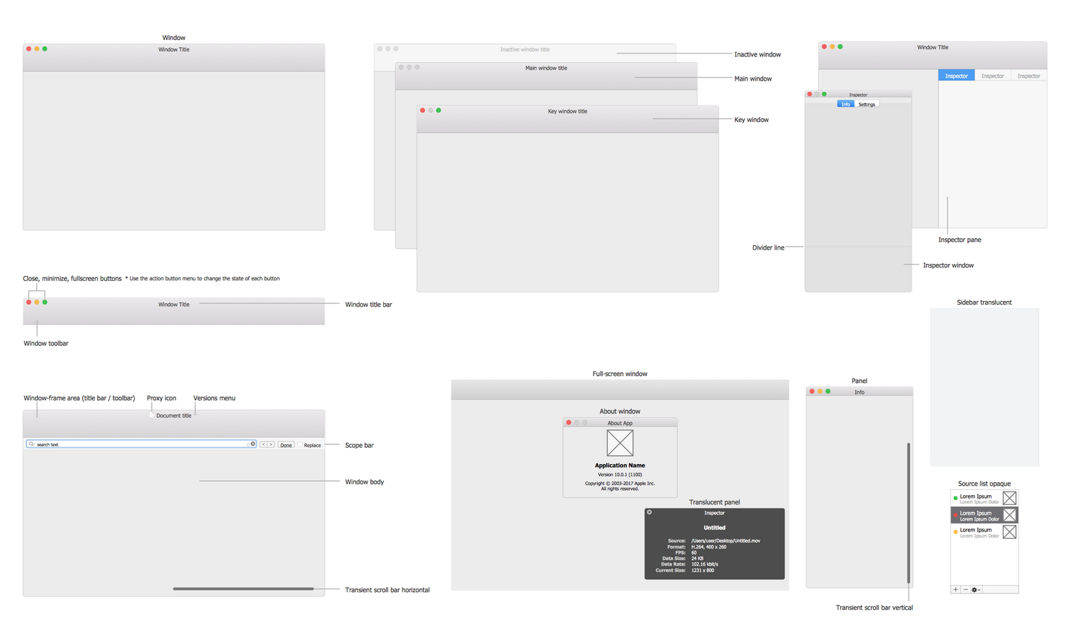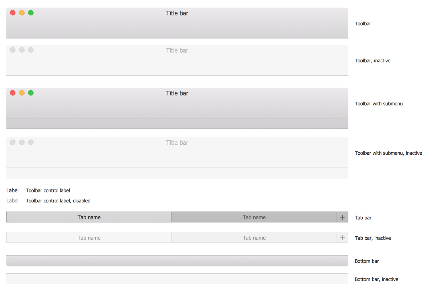 During the process of new application development under the macOS Sierra, graphic designers and developers need modern, convenient, and powerful software to facilitate the designing of the graphical user interface. ConceptDraw DIAGRAM extended with the macOS User Interface solution is ideally suited to easily achieve designing goals.
