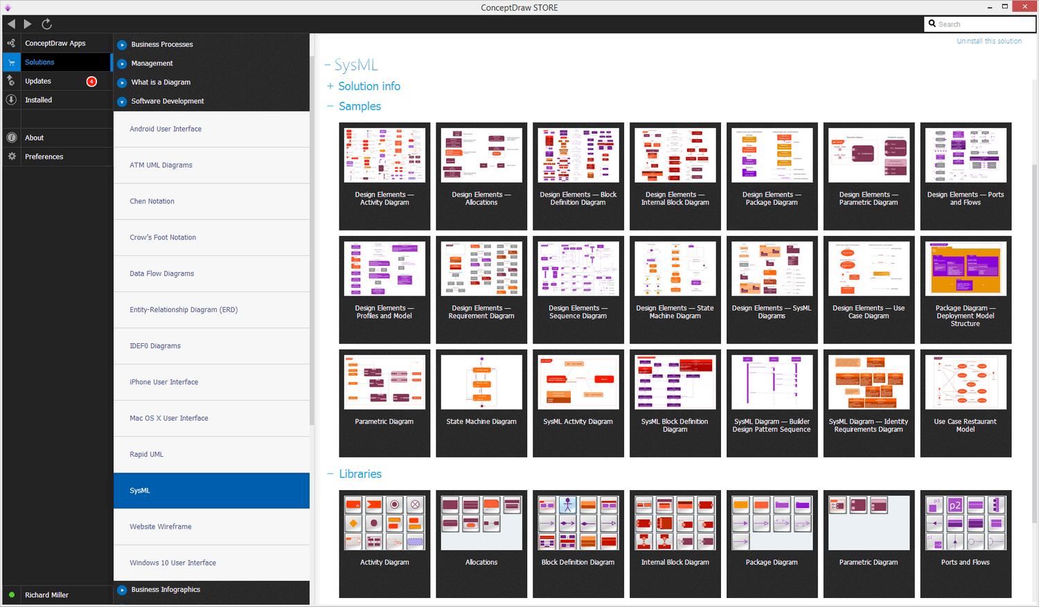 After ConceptDraw STORE and ConceptDraw DIAGRAM are downloaded and installed, you can install the SYSML solution from the ConceptDraw STORE.