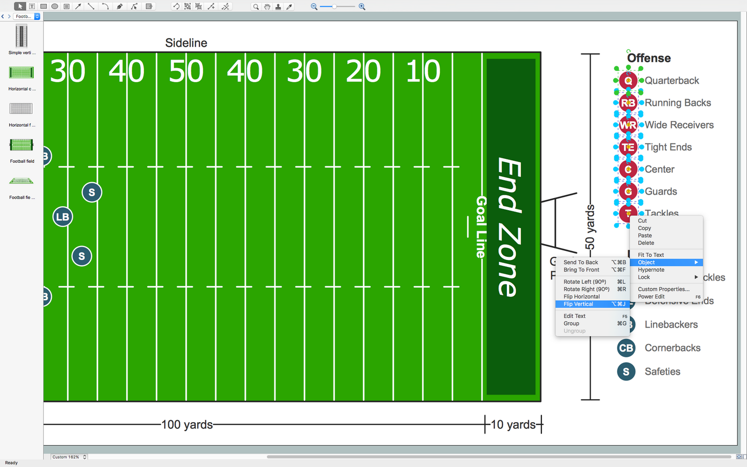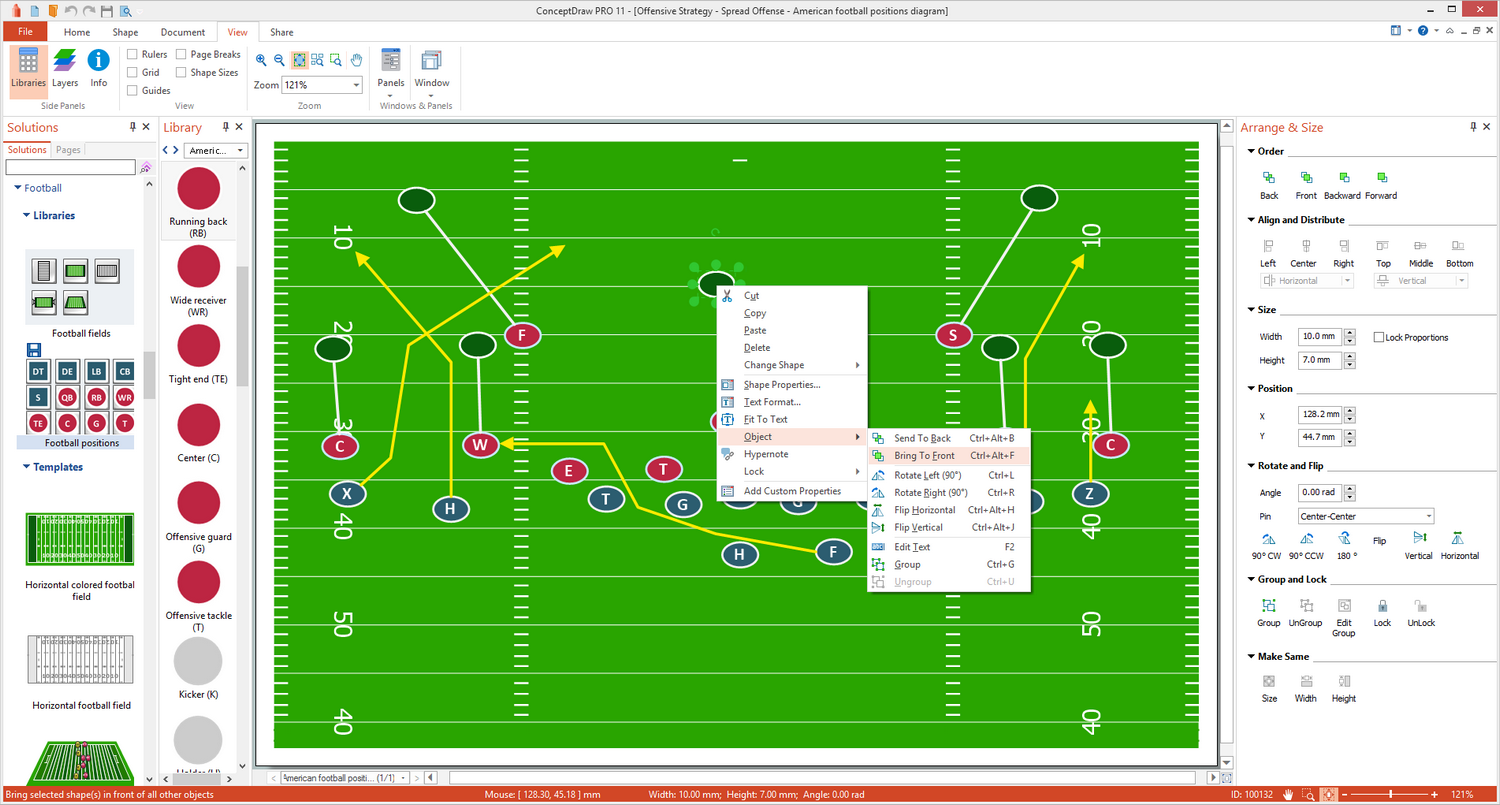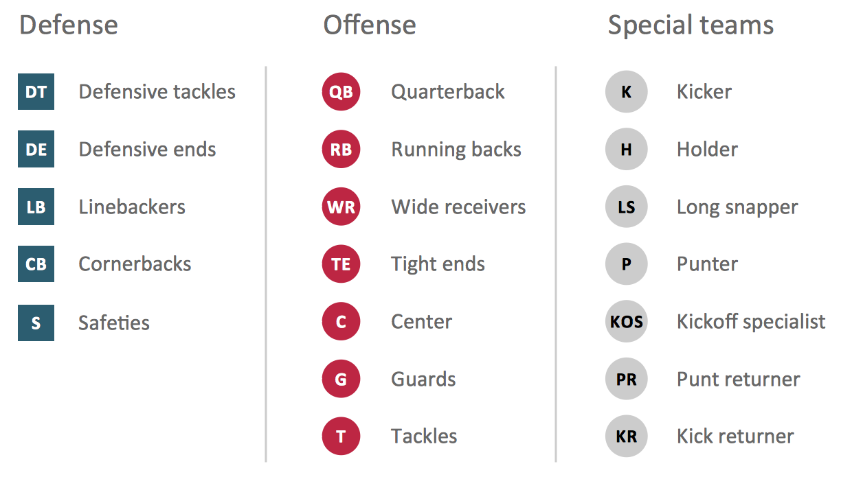 Learning football offensive and defensive plays and strategies becomes easier when using ConceptDraw DIAGRAM. Scalable vector graphics created in ConceptDraw DIAGRAM are easy to show on a large screen, so preparation for game day becomes more visual.