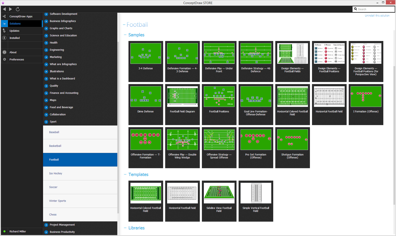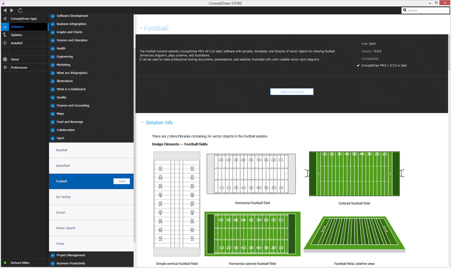 After ConceptDraw STORE and ConceptDraw DIAGRAM are downloaded and installed, you can install the Football solution from the ConceptDraw STORE.