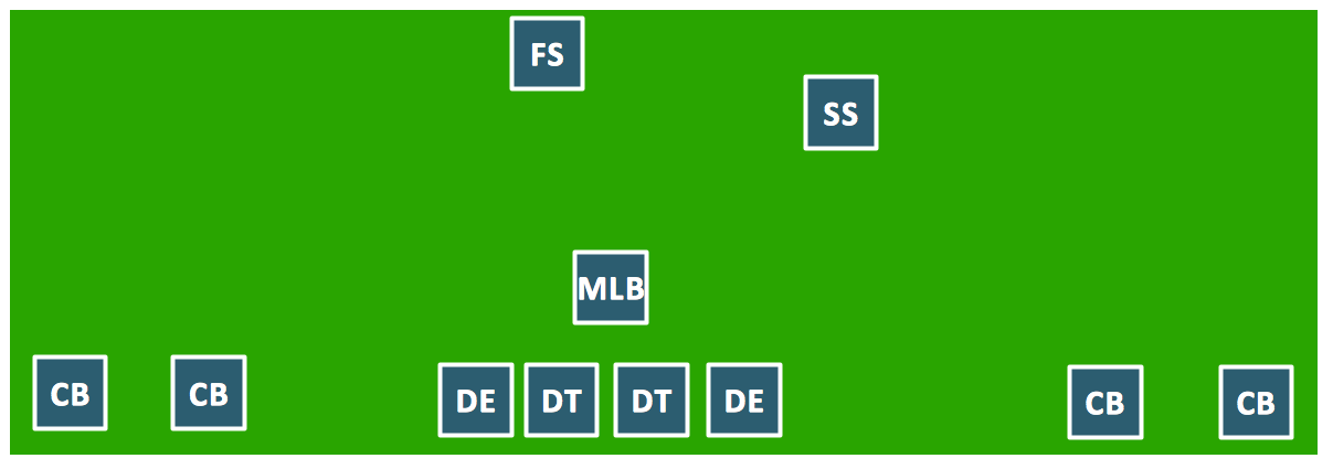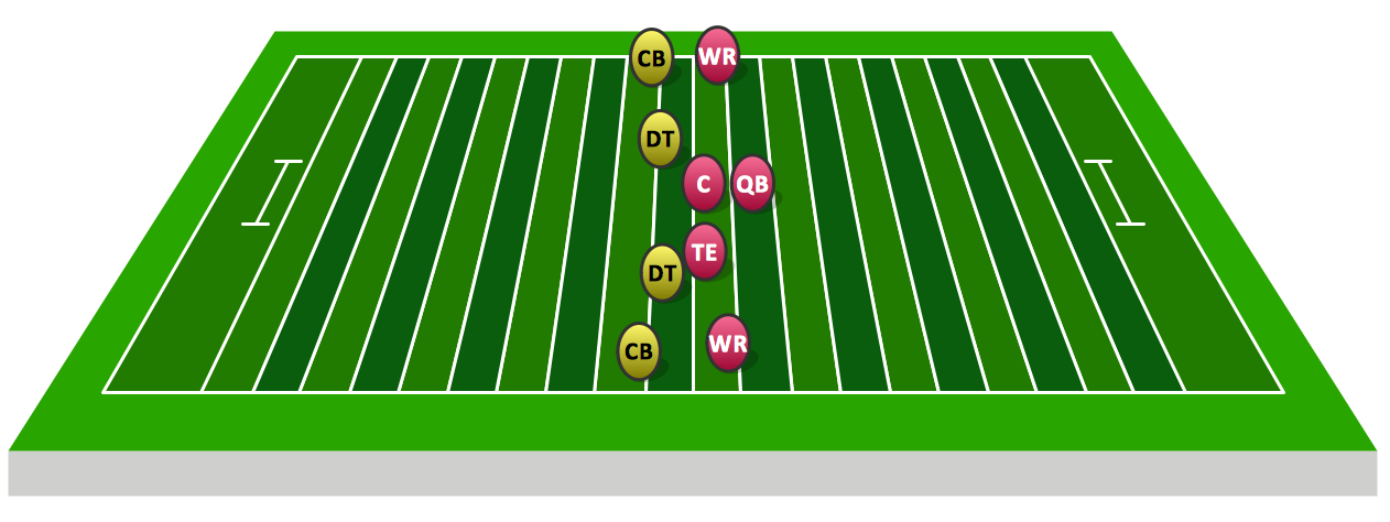 This sample shows 46 defensive formation (original 4-3 base set) developed and popularized by the Chicago Bears. You use this sample to explain positions, and then add additional content to explain the situation, adding arrows and text labels.