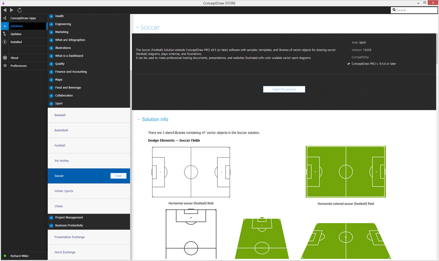 After ConceptDraw STORE and ConceptDraw DIAGRAM are downloaded and installed, you can install the Soccer solution from the ConceptDraw STORE.