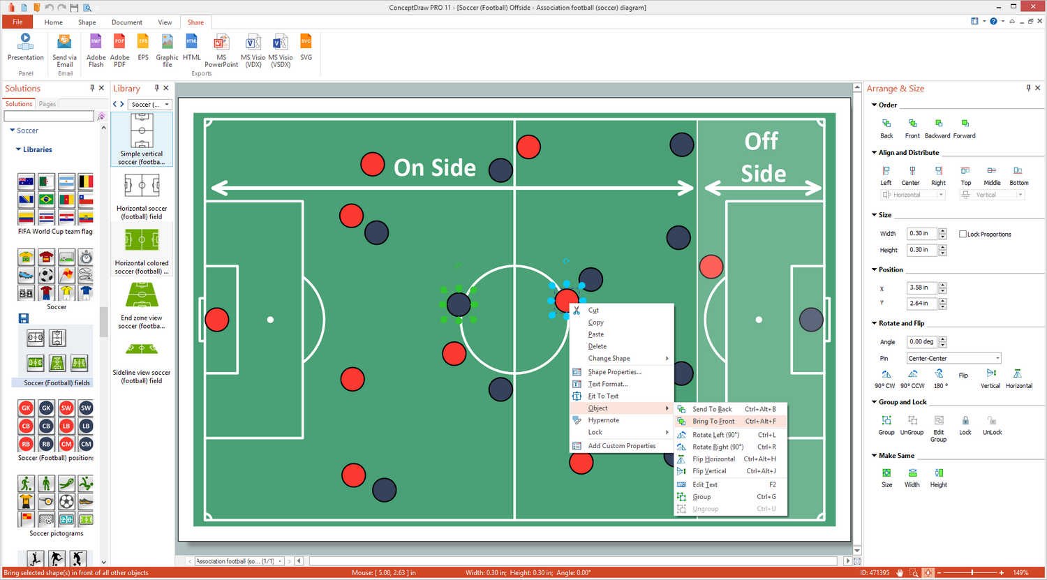 There are 3 stencil libraries containing 47 vector objects in the Soccer solution.