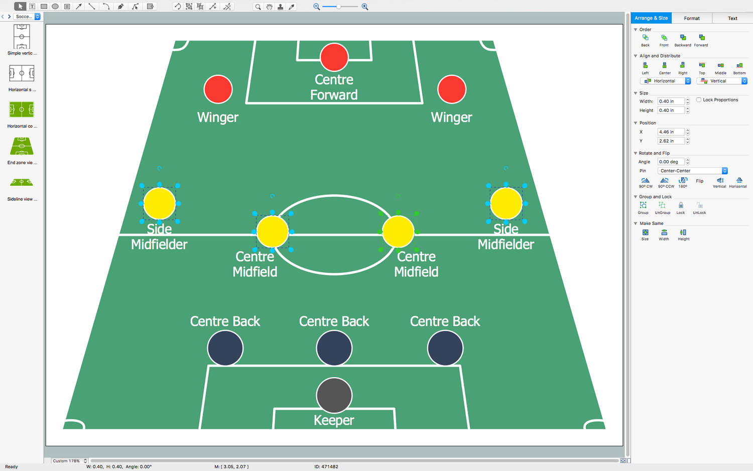 There are a few samples that you see on this page which were created in the ConceptDraw DIAGRAM application by using the Soccer solution. Some of the solution's capabilities as well as the professional results which you can achieve are all demonstrated here on this page.