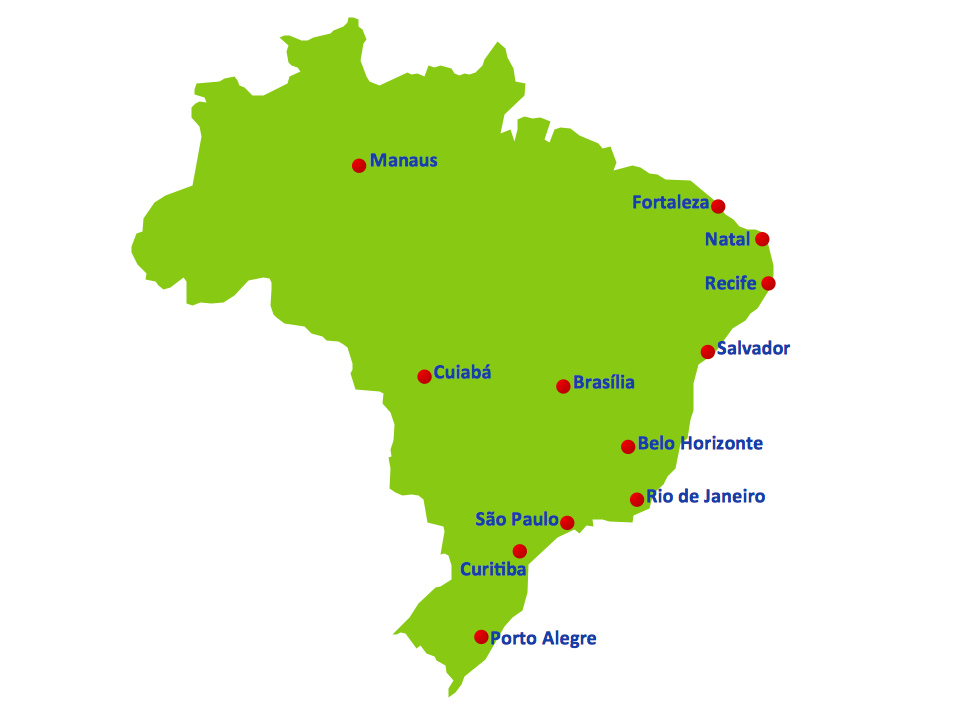 This diagram was created in ConceptDraw DIAGRAM using the Football Library from the Soccer Solution and the libraries from the Continent Maps Solution. An experienced user spent 10 minutes creating this sample.