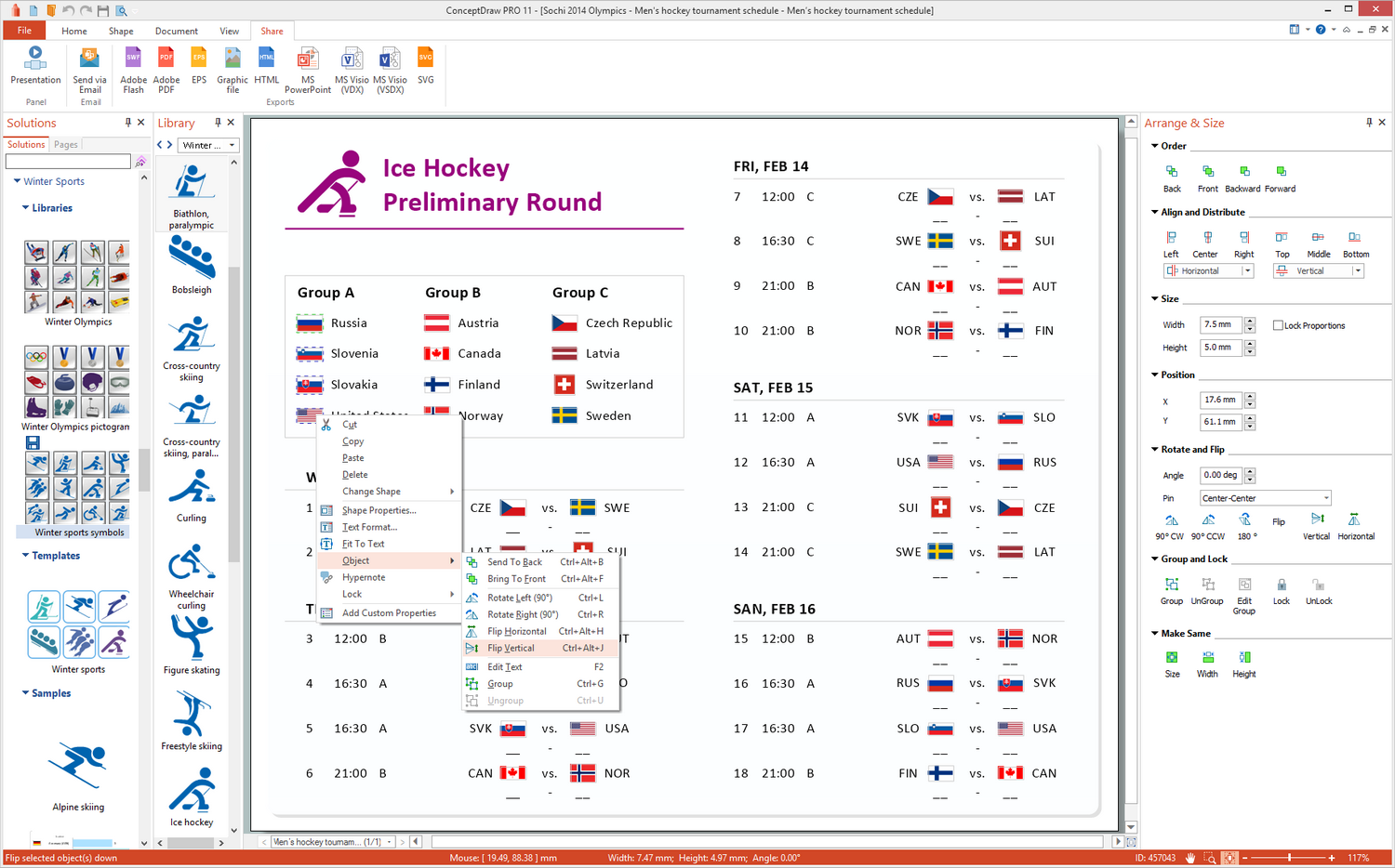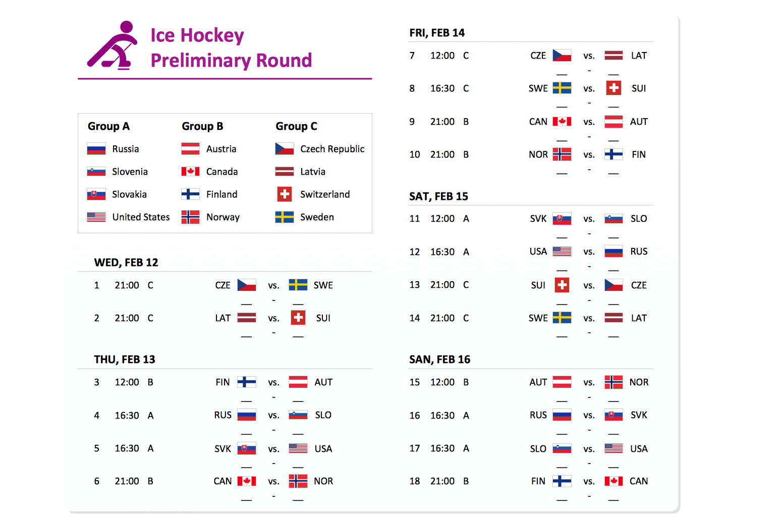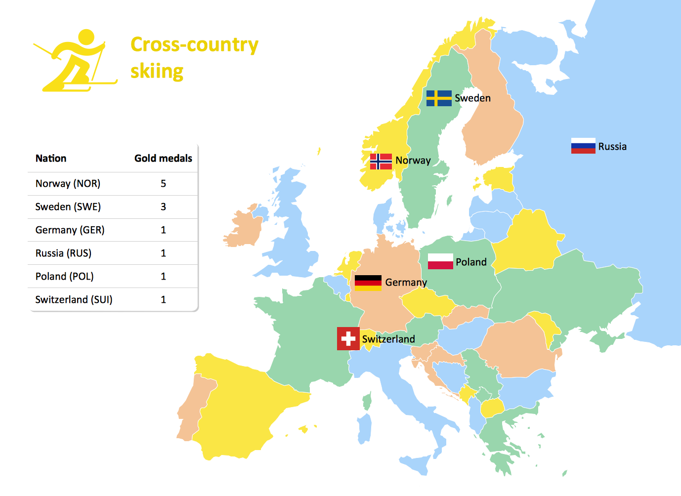 There are a few samples that you see on this page which were created in the ConceptDraw DIAGRAM application by using the Winter Sports solution. Some of the solution's capabilities as well as the professional results which you can achieve are all demonstrated here on this page.