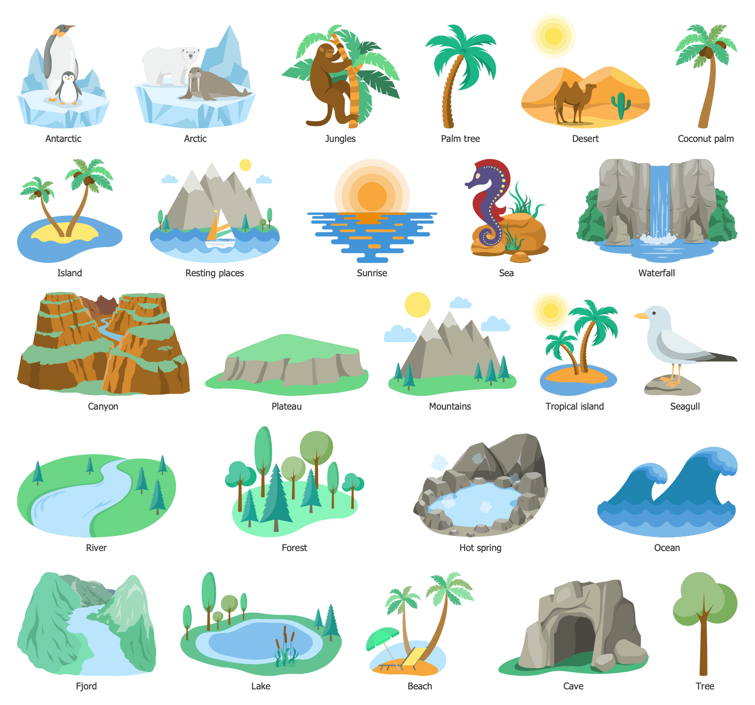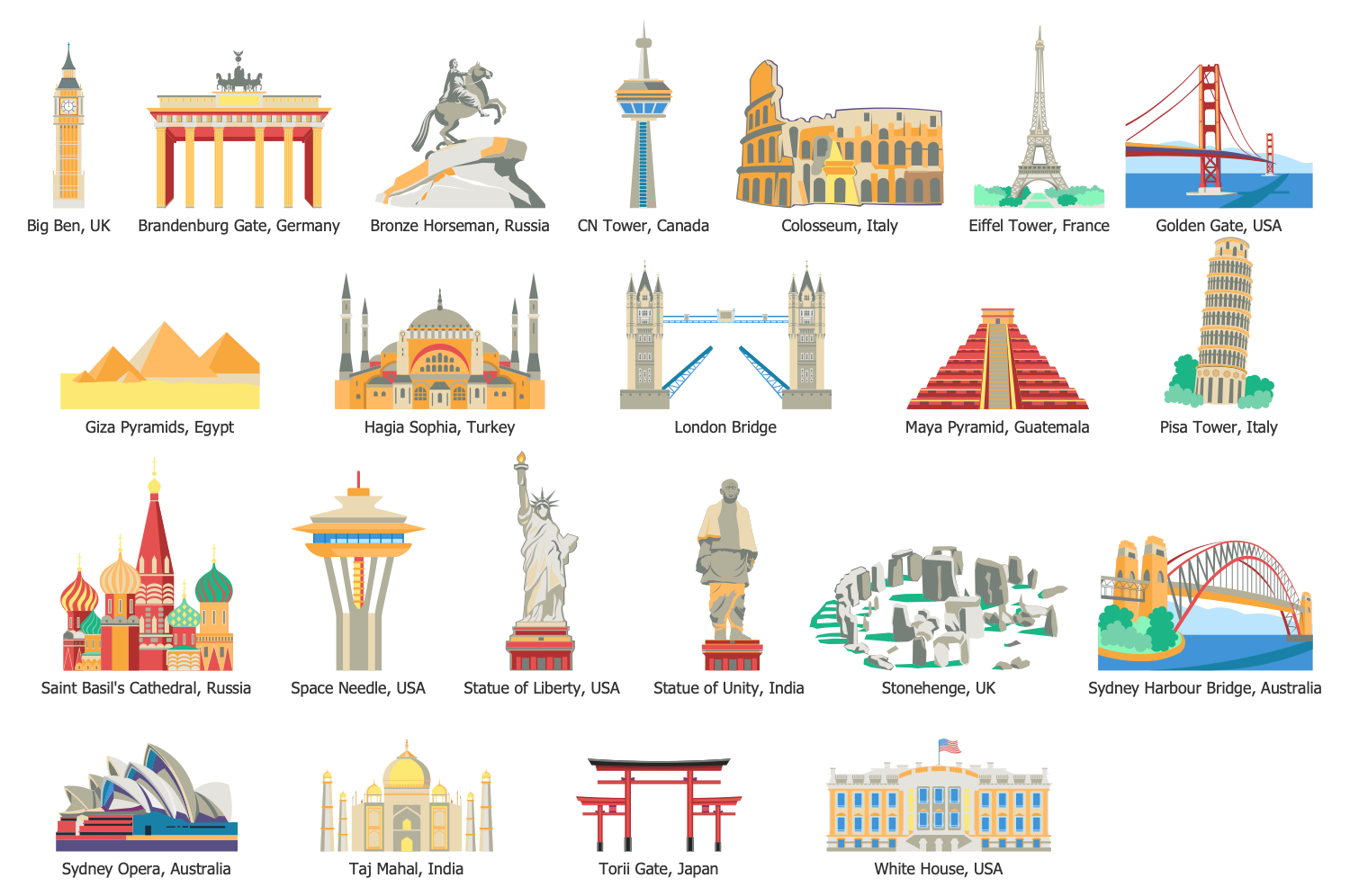 All source documents are vector graphic documents which are always available for modifying, reviewing and/or converting to many different formats, such as MS PowerPoint, PDF file, MS Visio, and many other graphic ones from the ConceptDraw Solution Park or ConceptDraw STORE. The Travel Infographics solution is available to all ConceptDraw DIAGRAM users to get installed and used while working in the ConceptDraw DIAGRAM diagramming and drawing software.