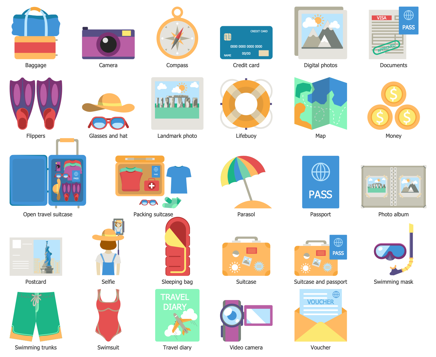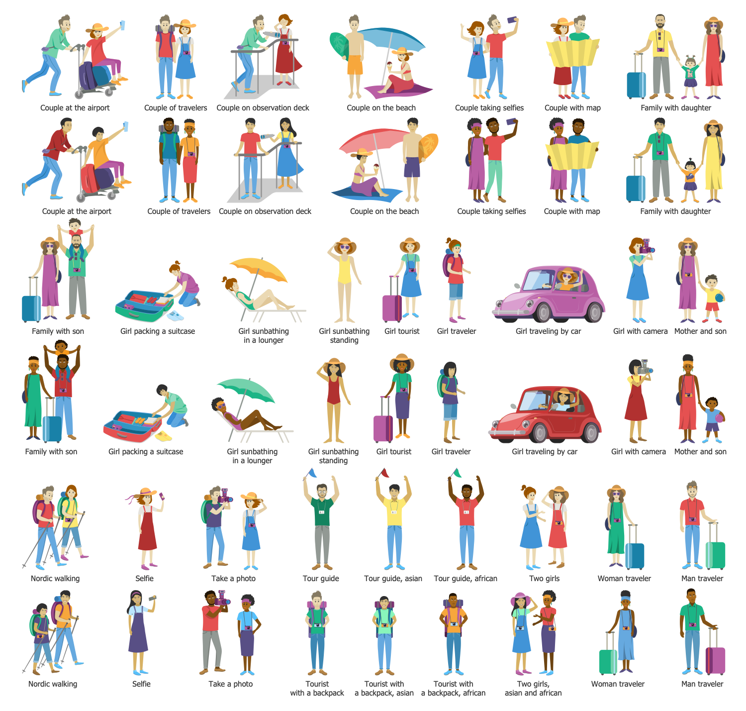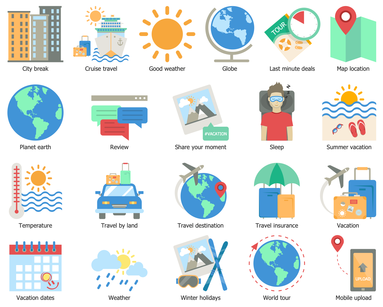 Travel Infographics solution greatly extends the ConceptDraw DIAGRAM functionality making it the best travel infographics design software. The included libraries contain a large variety of ready-made travel infographic vector clipart, design objects and travel infographics icons for drawing exceptional travel infographics and business travel infographics, travel illustrations, presentations, diagrams, schematics, plans, maps, posters, billboards, advertising, marketing, and other materials on the subject of travel and tourism, outdoor activities and extreme sports. This solution contains professionally-designed samples and travel infographics template, and is intended for all specialists in the travel sphere, travel agents, marketers, advertisers, PR specialists, travelers and all other people related with tourism and rest.
